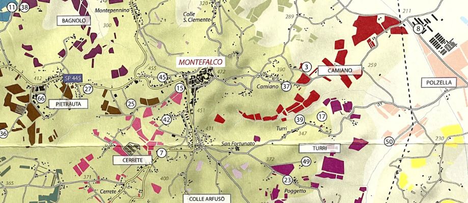 Dit zorgt voor erg verspreid liggende wijngaard(jes) en niet voor een grote concentratie wijngaarden op één specifieke locatie. In veel bekendere wijngebieden zoals Brunello di Montalcino of Barolo nemen wijngaarden een groot aaneengesloten deel van het landschap in.